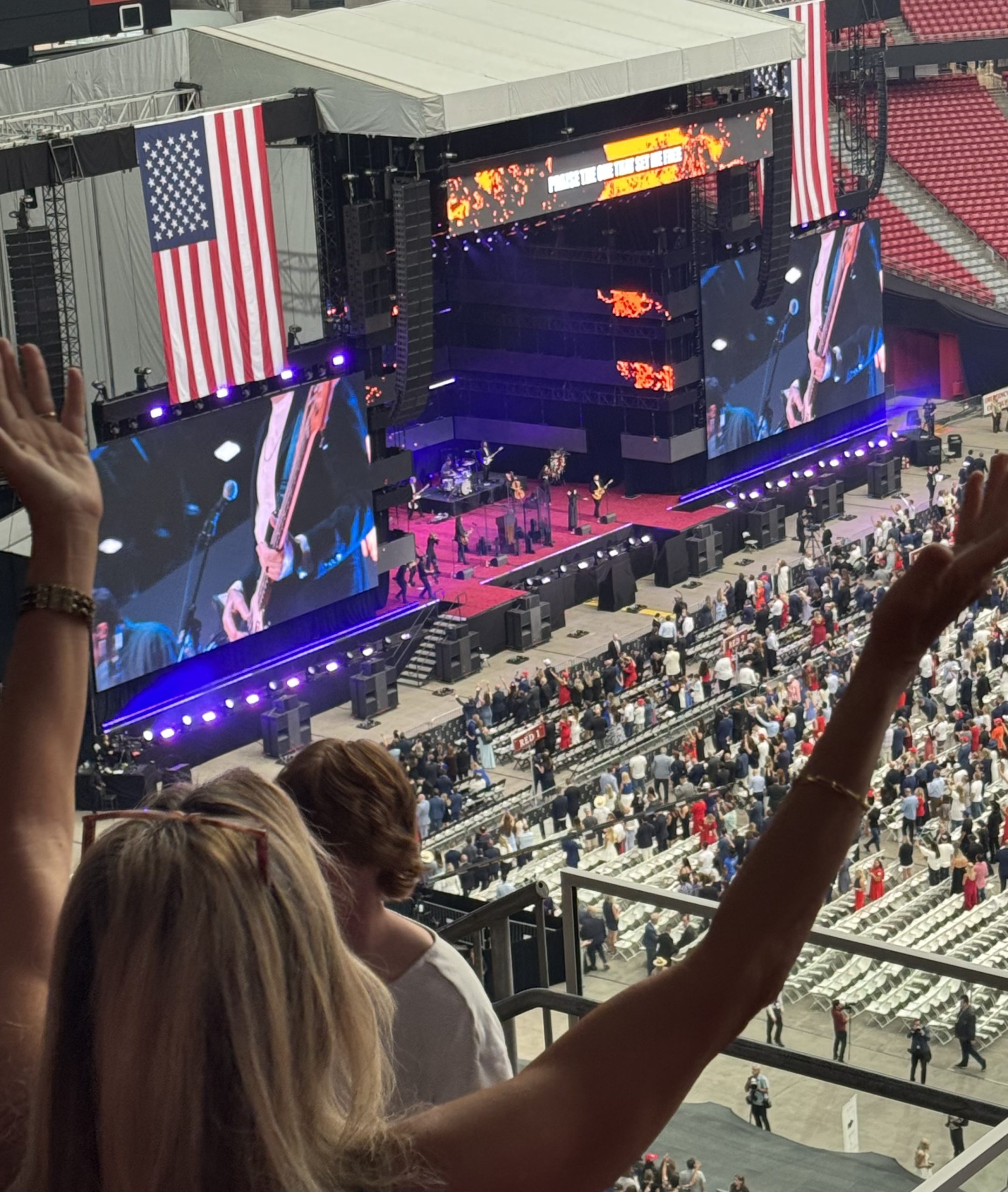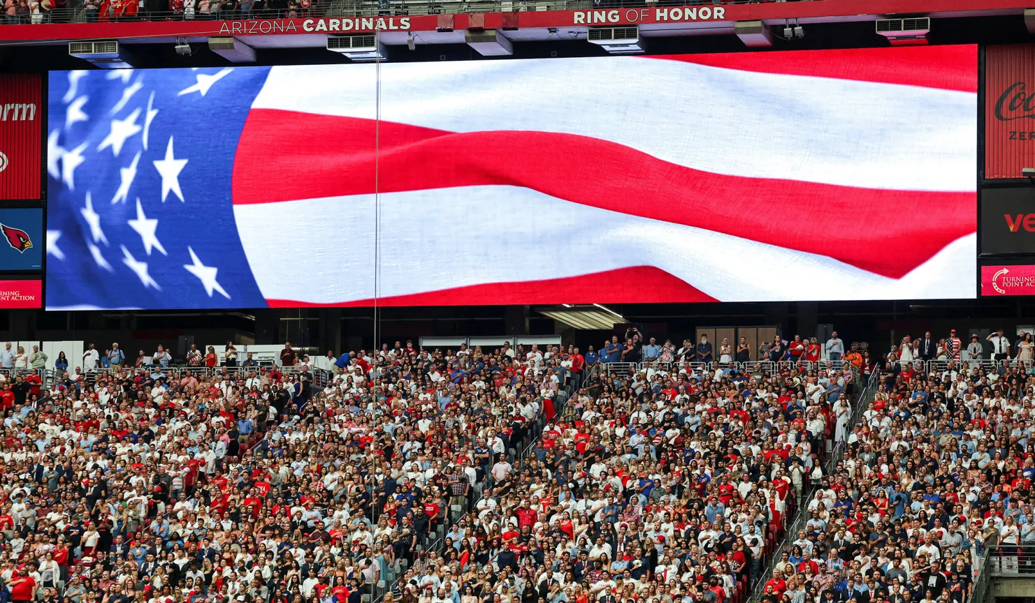 Under a partly cloudy sky, endless lines snaked outside State Farm Stadium. Mourners stood so close feet vanished from sight. When the sun broke through, heat overwhelmed; some vomited, others fainted. Yet resolve held firm, all drawn to honor Kirk. No fighting, no yelling, no heated tempers. By 10:30 a.m., medics treated about 30 people for exhaustion, dehydration and breathing problems, according to John Chester with the Glendale Fire Department.